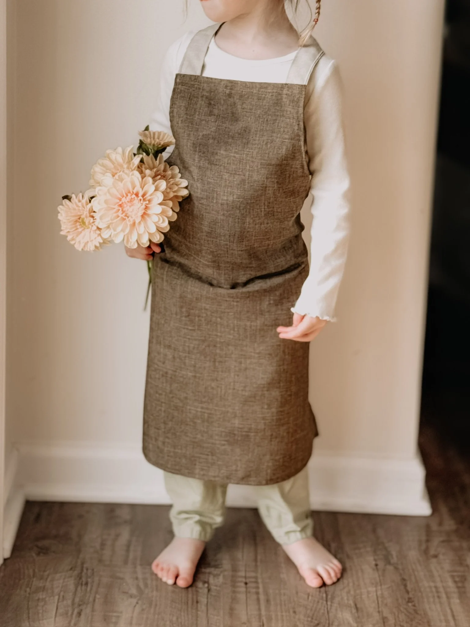 Made to wear over your clothes while work as hard as you do! From the garden to the kitchen, art studio or workshop. Friendly with splatters, splashes, and spills! This piece has two deep front pockets.
